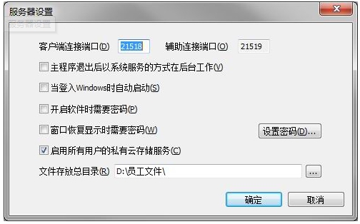 1、在"服务器端设置"中,为所有客户端开启存储空间,服务器端会在总的目录下为每个客户端建立一个和用户名相同的子目录存放文件。