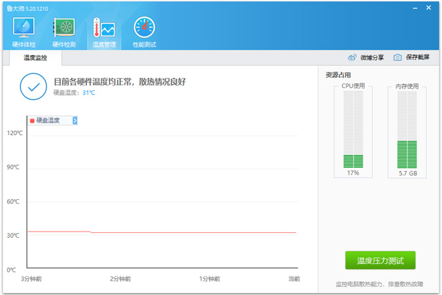 4、温度管理:可以检测电脑硬件温度是不正常,并支持节能降温;