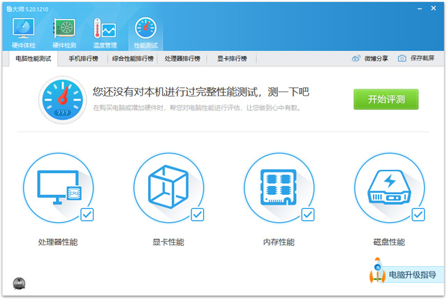 5、性能测试:支持电脑性能测试,可以测试处理器性能,显卡性能,内存性能和磁盘性能。