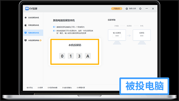 3、打开被投电脑的EV投屏,查看投屏码