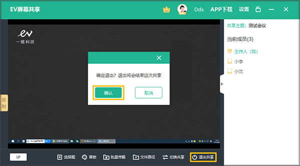 3.8点击【退出共享】→【退出】即可退出屏幕共享