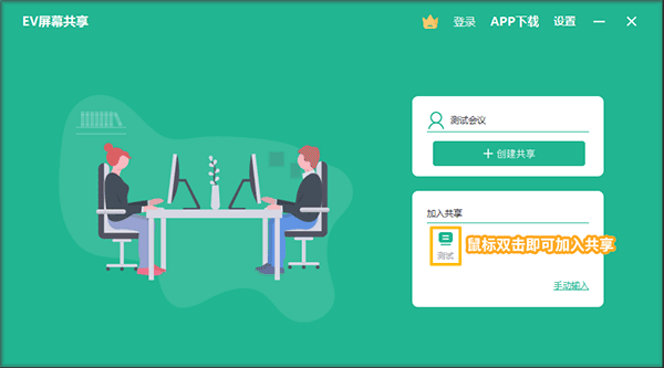 双击【加入共享】下的共享设备即可自动加入屏幕共享