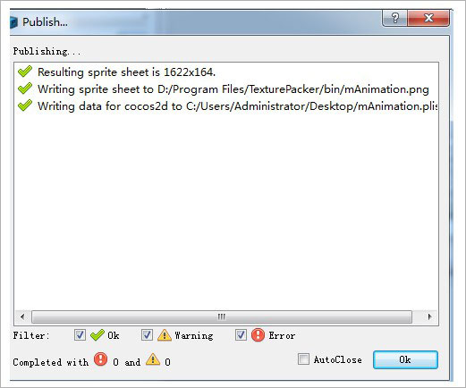 3、ok保存了,在data file处填入你要的plist文件路径,在texture format处选择你要的图片格式,在texture file填入你要生成的图片路径;