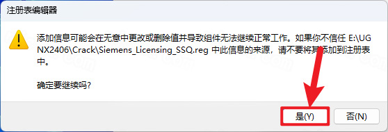 3、打开安装包解压后的【UG NX2406(64bit)】文件夹,打开【Crack】文件夹,双击打开【Siemens……】注册表文件
