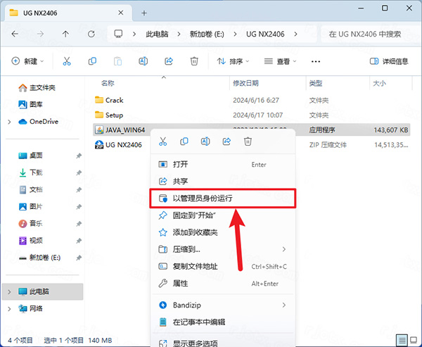 1、下载解压,得到nx2406软件安装包,先安装【JAVA_WIN64】选择【以管理员身份运行】
