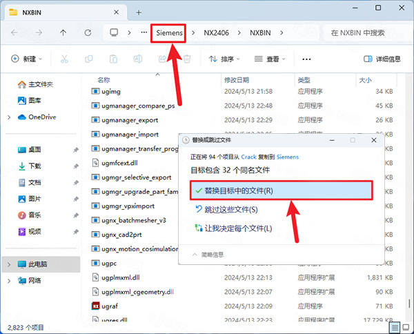 13、回到安装包解压后的【UG NX2406(64bit)】文件夹,打开【Crack】文件夹复制【NX2406】文件夹;