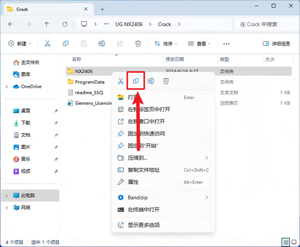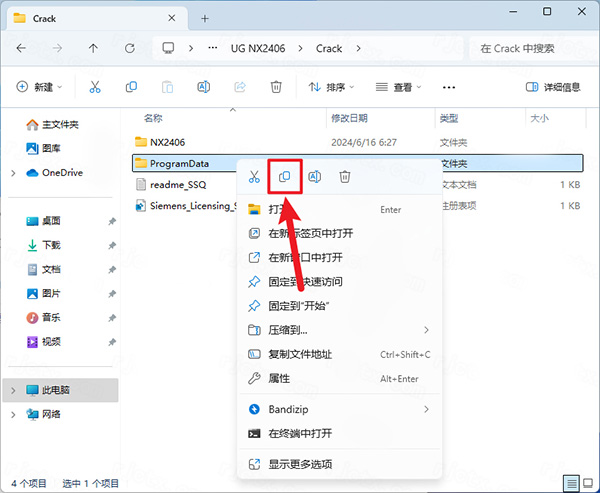 5、打开安装包解压后的【UG NX2406(64bit)】文件夹中的【Crack】文件夹,复制【ProgramData】文件夹
