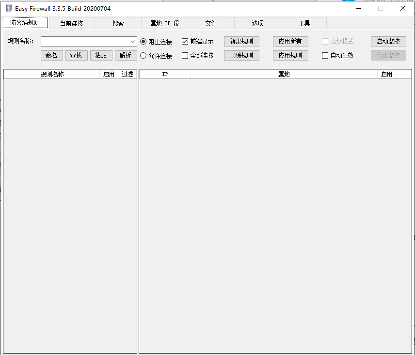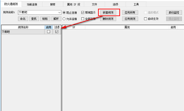 2、监控连接到电脑上的IP地址,一键设置IP地址防火墙规则。