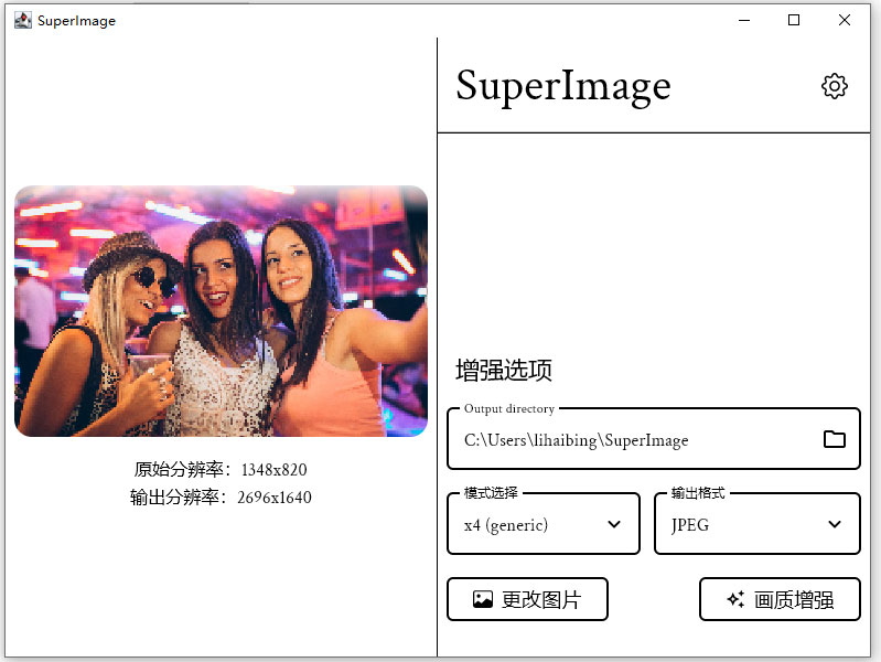 1、在SuperImage主界面中,找到并点击“选择图片”或按钮来导入您想要放大增强的图像。