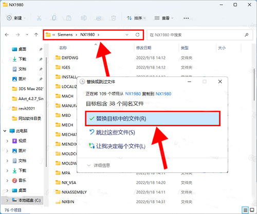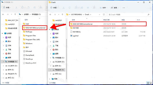 1、下载解压,得到siemens nx 1980中文版,打开Crack文件夹,将【NX6-NX1980LicenseServer】文件夹复制到【C盘】根目录;