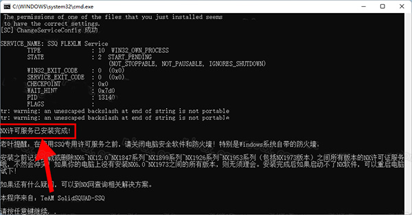 3、当提示“NX许可服务已经安装完成”后,按任意键退出;