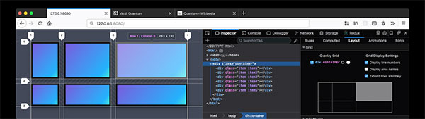 Firefox 是目前唯一配备打造和设计 CSS 网格的工具的浏览器。这些工具可以让 CSS 网格可视化,显示关联区域的名称,预览网格变化,等等。