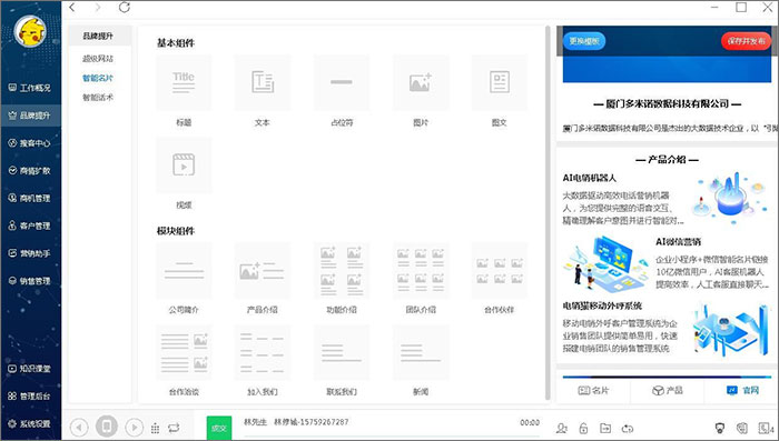 智能小程序名片建设是一套微信名片裂变营销方案。全方位打造个人/企业品牌形象,统一标准化的输出企业品牌优势,360°触达客户,增加客户信任,便于传播与转介绍。