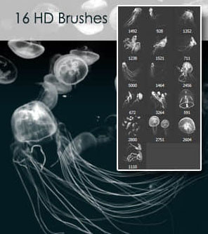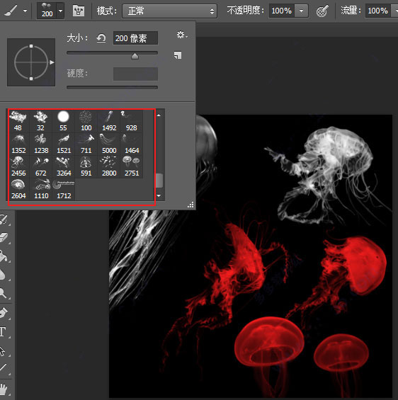 4、找到最后的画笔就是ps深海水母笔刷,有多种类别,用户可以调整大小直接放在图片上使用。