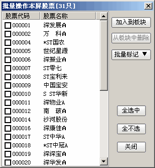 2 、勾选自己需要添加到板块中的股票,或者选择“全选中”。