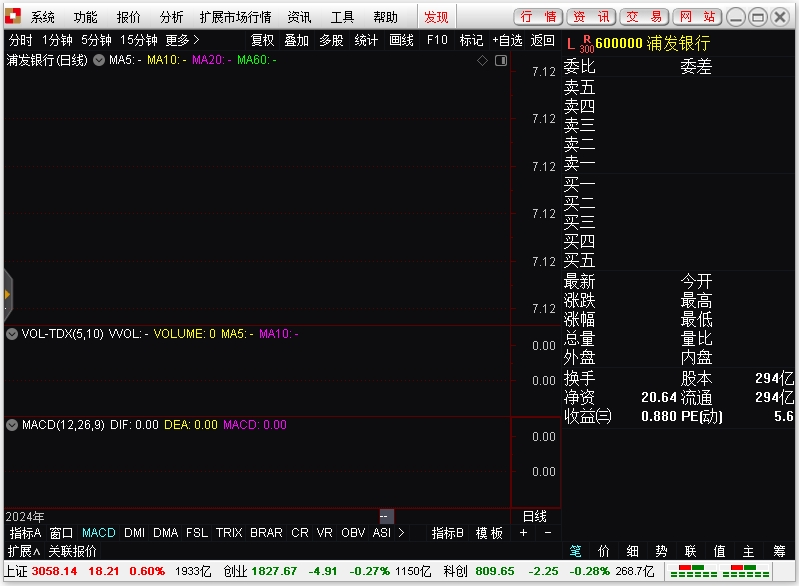 定位到某只股票后,双点它,或按回车键,就进入到这只股票的图形分析/分时图。