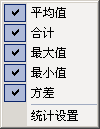 按照“平均值”、“合计”、“最大值”、“最小值”、“方差”五种统计方式显示当前行情栏目的所有数据,同时可以使用“统计设置”进行设置。