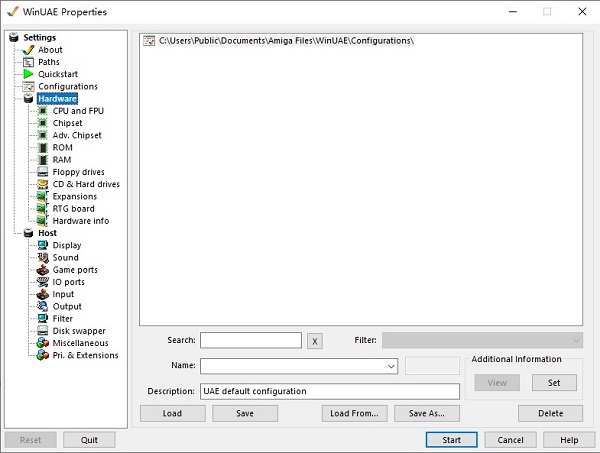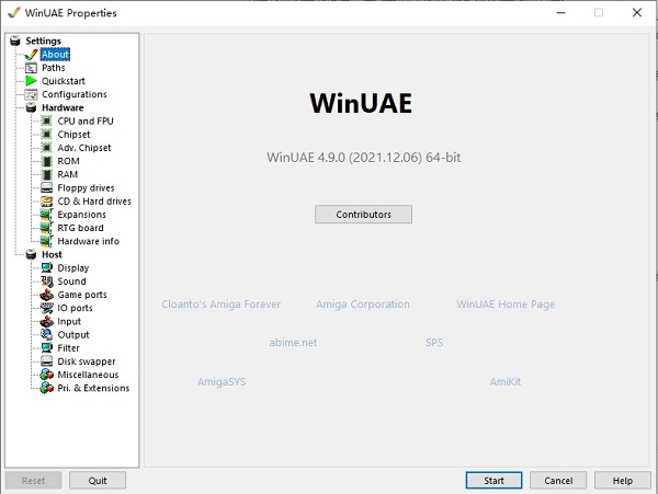 运行软件时的第一个屏幕是快速启动部分,它为您提供了一种极其简单的方法来配置您的仿真Amiga。只需选择您想要的阿米加车型强制启动只读存储器为了。为了您的方便,一个流行的阿米加车型对照表可在例子佩奇。