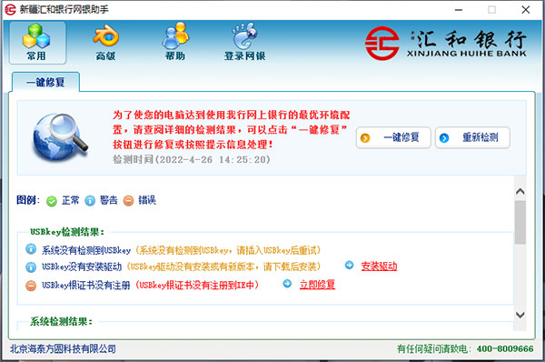 1、新疆汇和银行网银助手最新版能进行检测修复,可以对系统环境检测以及对各种安全控件检测的检测与安装修复2、USBKey管理,检测USBKey证书信息