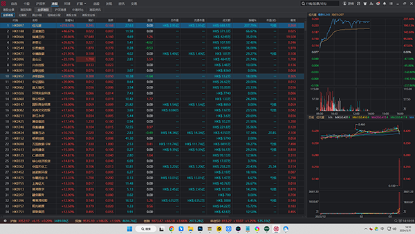 港股面板展示的是在香港上市的股票行情,这些股票不属于B股,一般以人民币作为中介进行结算交易