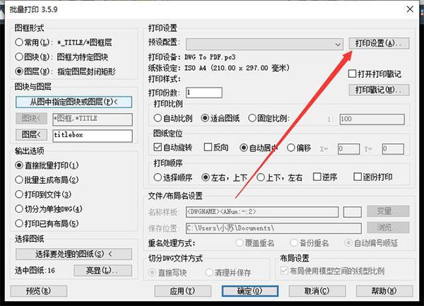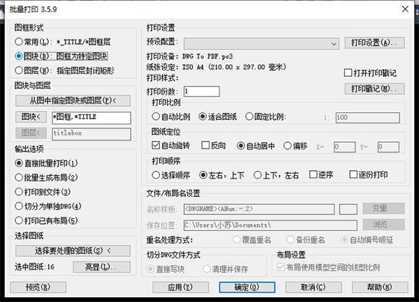 2、支持智能识别图纸的打印区域(图框)及绘图比例,无需逐个设置图纸的打印区域。