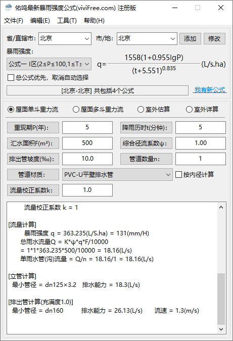 2、可以自行添加、修改、删除暴雨强度公式,满足不同的需求。
