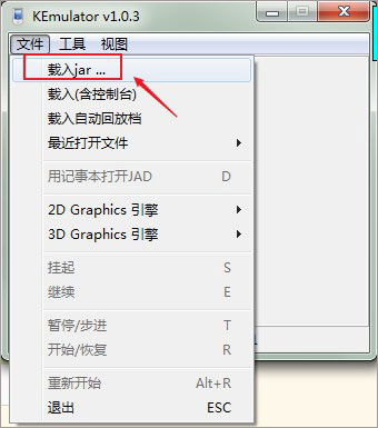 8、先下载Java软件:菜单栏 → 文件 → 载入jar 或者直接拖放到 KEmulator 里面。