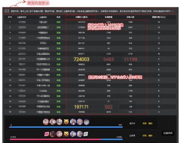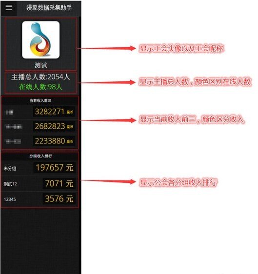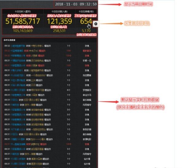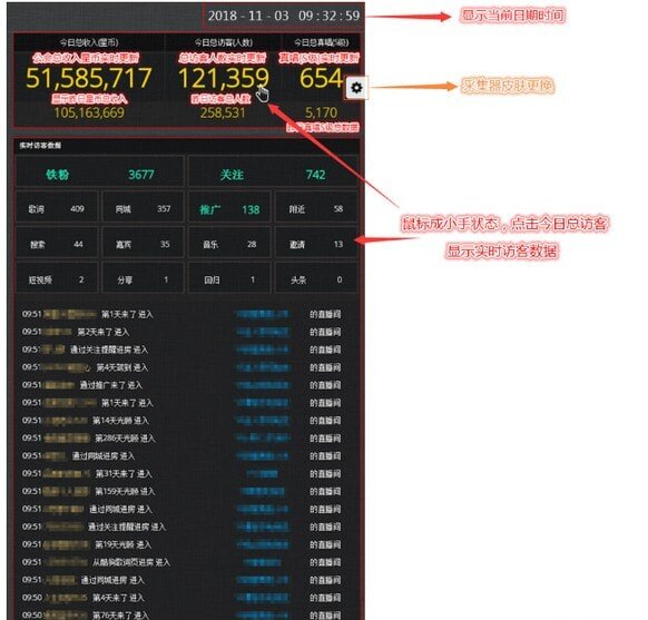 2、公会总收入星币实时更新,100%准确!今日总访客(人数),今日总真唱(S级), 昨日星币总收入,昨日访客总人数,昨日真唱S级总数据,采集器皮肤更换;