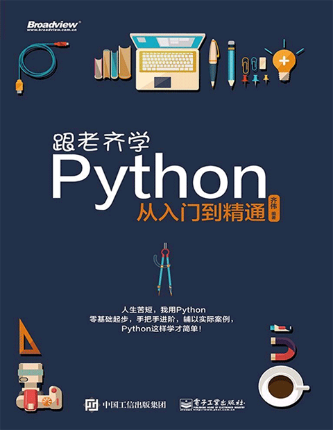 《跟老齐学python:从入门到精通》是面向编程零基础读者的Python入门教程,内容涵盖了Python的基础知识和初步应用。以比较轻快的风格,向零基础的学习者介绍一门时下比较流行、并且用途比较广泛的编程语言,所以,本书读起来不晦涩,并且在其中穿插了很多貌似与Python编程无关,但与学习者未来程序员职业生涯有关的内容。