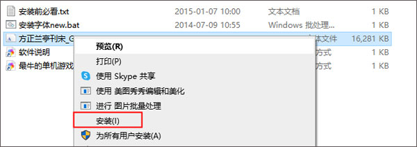 直接将字体复制到C:\WINDOWS\Fonts即可 推荐