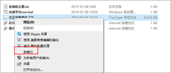 直接将字体复制到C:\WINDOWS\Fonts即可 推荐