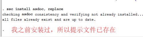 1、首先,在软件中输入代码(ssc install asdoc, replace)安装外部命令asdoc。