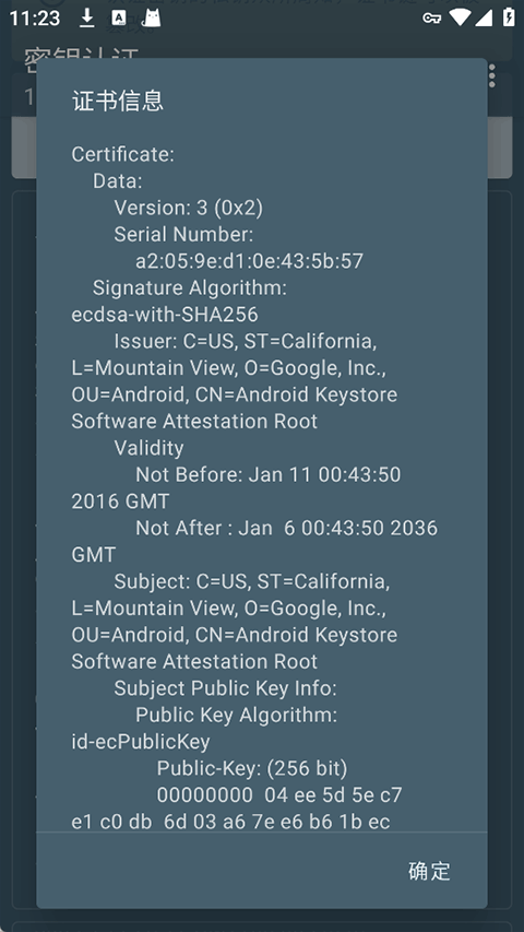Security Level:显示 TEE 或 StrongBox 才安全;显示 Software 则代表认证可被伪造。