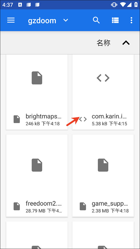 3、在内部存储中找到diii4a---gzdoom---选com.karin.idTech4Amm_preferences_backup.xml