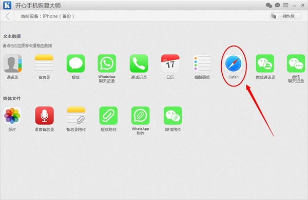 苹果怎么恢复Safari的浏览记录?iPhone,iPad,iPod上误删的Safari书签可以恢复吗?误删的Safari浏览器上的网页记录可以恢复吗?下文就教您如何使用开心手机恢复大师通过您已有的iTunes备份,将Safari记录恢复到电脑上。