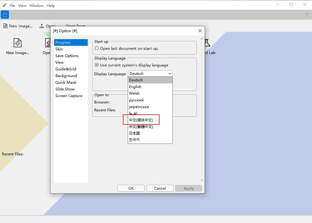 2、在Language中选择简体中文语言,点击apply应用即可。