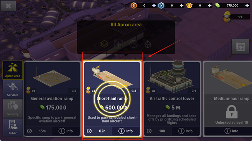 1、进入游戏后点击开始按钮,选择初始模式即可进入机场主界面进行建设与管理操作。