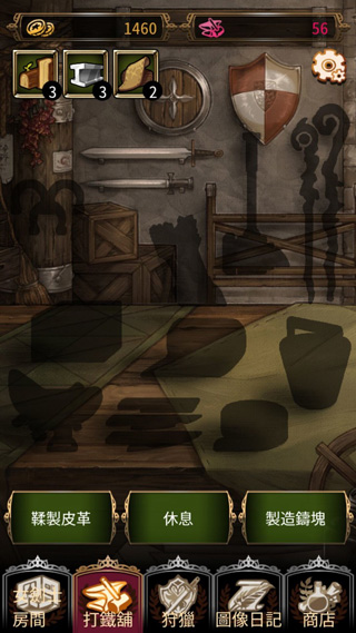 进入主页面我们会发现在主页面上的选项并不是很复杂的,下面就由香蕉君来为大家介绍下其主要功能吧。首先我们会发现在下方有三个选项:鞣质皮革,休息,制作铁块。这个可以在我们闲暇时间进行点击,每次点击之后会出现不同的点击选项,来来回回,反反复复就会又重新回到界面上所显示的图标了。此外,在我们每次点击选项后会有3秒左右的制作时间,当我们等待制作完成后会给我们相应的物品储存到左上方的道具里面,这些道具可以帮助我们满足顾客订购的武器之类的重型道具。当我们制作一会后会光顾顾客,我们可以根据顾客的需求进行物品制作,这里有的玩家就问了,没有任何制作功底怎能帮顾客完成商品呢?这里蕉君可以告诉大家,这个可以大可放心的,顾客虽然要求的商品五花八门的,但是系统为我们提供的制作程序是非常简单的,比如顾客需要一个布偶,我们只需要在系统所提示的地方等待布块过来时到达地点后点击下屏幕就可以了,来回3,4次就制作成功了。在制作完成后系统会给我们的成功率打出分数的,这个分数就是顾客商品的得分,所以我们要做到最小的失误获得顾客的最满意的笑容。在完成后我们会获得一定的金币报酬的。