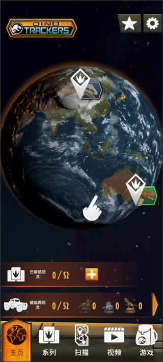 1、下载安装好侏罗纪世界真相中文版之后,进入游戏主界面,点击地球上的恐龙图标;