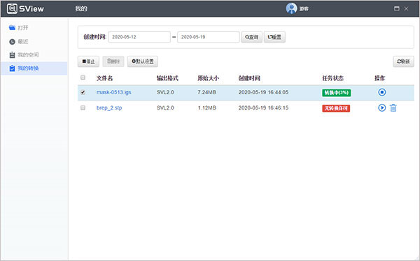 11、我的转换界面包含转换文件列表,可对转换文件进行转换、暂停、删除等操作。
