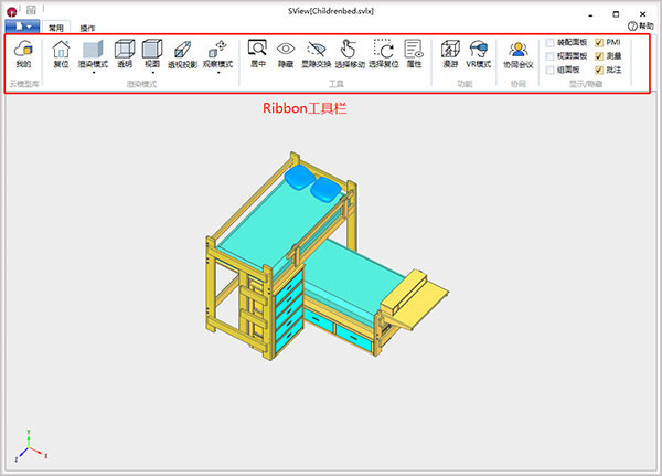 7、常用工具栏提供了常用功能的快捷方式,包括云模型库、模型复位、视图操作、模型操作、VR模式和协同会议、显示/隐藏等;