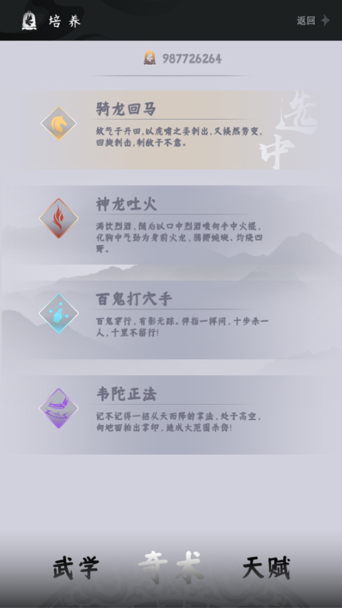 玩家可选择不同的江湖侠客,每个角色都有专属轻功技能,同时可以搭配不同武学心法,使跑酷玩法更加多变。