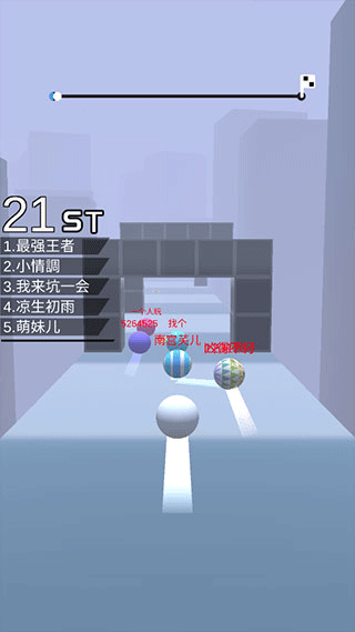3、在跑酷过程中玩家需要集中精神控制球球躲避眼前的障碍物,利用途中的加速带可以一路加速前进,直到上方的进度条达到终点即获得胜利;