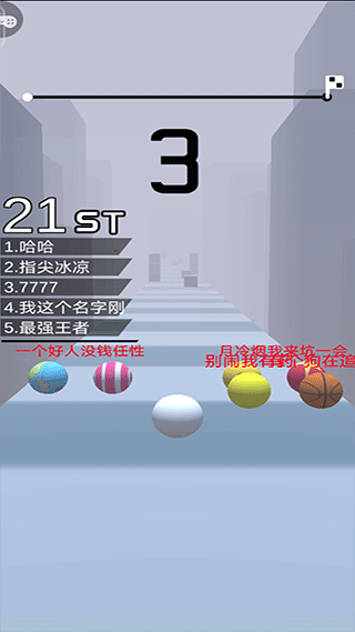 2、每局游戏都有21个玩家在一起竞争,运动员将在跑道上看到五种不同颜色的球。