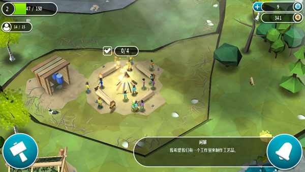 前面说到这是一款模拟经营游戏,游戏采用的画面是3D立体,玩家在其中拥有的是上帝视觉,主要游戏内容就是指挥一群人造成任务获取相应的经验值: