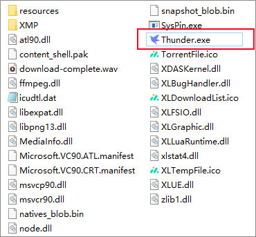 3、如果没有创建好桌面图标,打开Thunder文件夹,点击Thunder.exe打开软件;