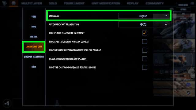 3、这里玩家可以在Language and chat一项的Language一行中选择适合自己的语言;