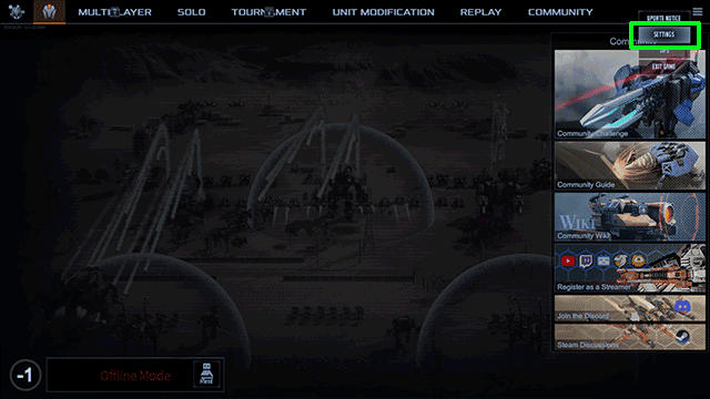 2、在来到了主菜单界面后,玩家想要调整语言的话必须选择并点击绿色方框内的区域选项,在弹出的选择框中选择“Settings”键;