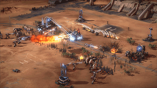 游戏兵种众多,坦克、飞机、巨舰、大中小型机甲应有尽有,足足有十八种兵种供我们选择,各自都有对应科技可供我们选择其中四样来配备出战,各兵种之间得科技升级还能触发联动效果,提升了其一会带动另一兵种被动提升(比如提升了兵蜂的科技,能召唤兵蜂的霸主也就顺带提升了),游戏各兵种就是在这科技之间的各种“羁绊”关联中,让战斗更加多姿多彩,也让形式更加多变,有时候甚至达到牵一发动全身的地步。