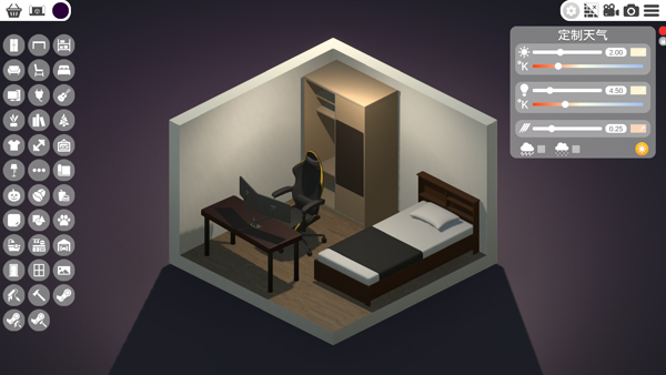 3、点击左上角家具,玩家可自由添加放置喜欢的家具;